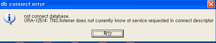 프로그램 접속 중 아래와 같은 리스너 에러가 났다 아래와 같은 에러 발생시 환경변수의 oracle_home 설정을 확인해 보자 DB의 오라클 HOME 경로와 동일한지 아닌지! 서버의 오라클 홈 경로와 서버의 환경 변수에 설정되어 있는 오라클 홈 경로가 달라도 아래와 같은 에러가 발생한다! 그리고 나서도 에러가 나면 리스너 로그를 살펴보자!